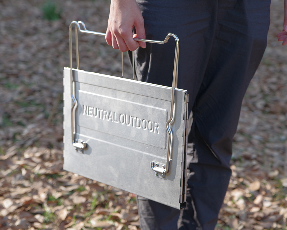 平型に畳めるコンパクトなX型焚き火台。ファミリーBBQに対応できるサイズで、コンパクトな収納を実現。専用焼き網付属。ロストルの高さを調整する機能も付いています。2022年モデルより鉄板が付属し、収納袋が改良されました。