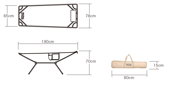 テンション構造フレームにより、かつてないコンパクト収納を実現。ベッドとしてもハンモックとしても使え、キャンプシーンに新しいくつろぎをプラス。キャリーバッグはシート枕につめて枕になります。